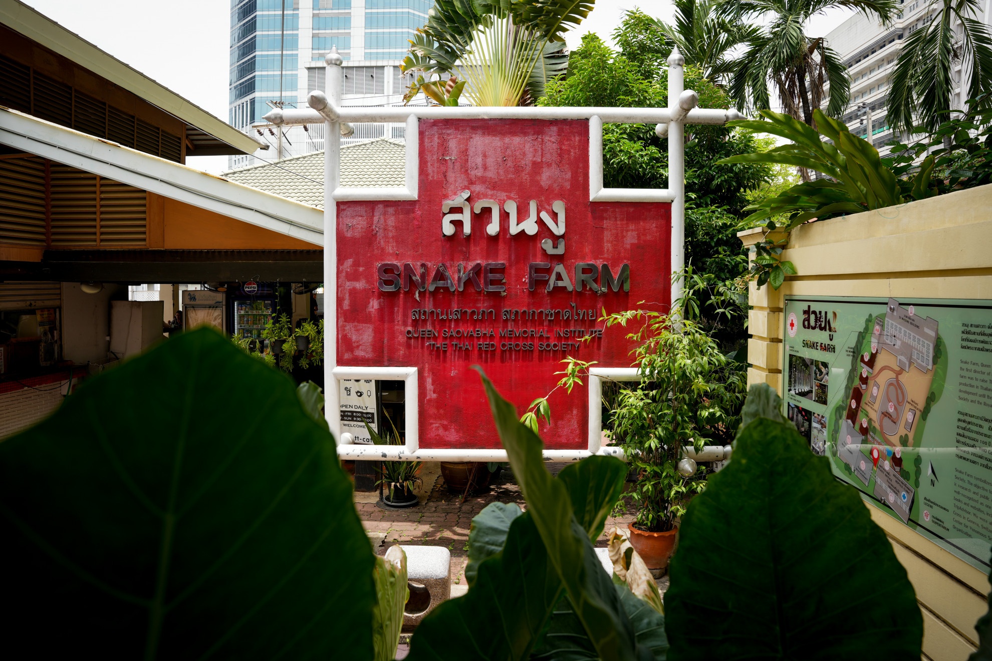 Sto andando al Queen Saovabha Memorial Institute, il centro della Thai Red Cross Society specializzato nell’estrazione del veleno dei serpenti per la produzione di antidoti, fondato nel 1922 per volontà del principe Paribatra Sukhumbhand. La struttura, la prima in Asia e la seconda al mondo, è enorme. Giardini curati si intrecciano con reparti di pronto soccorso, sale espositive, laboratori di studio, spazi per dimostrazioni e aree per le esercitazioni.