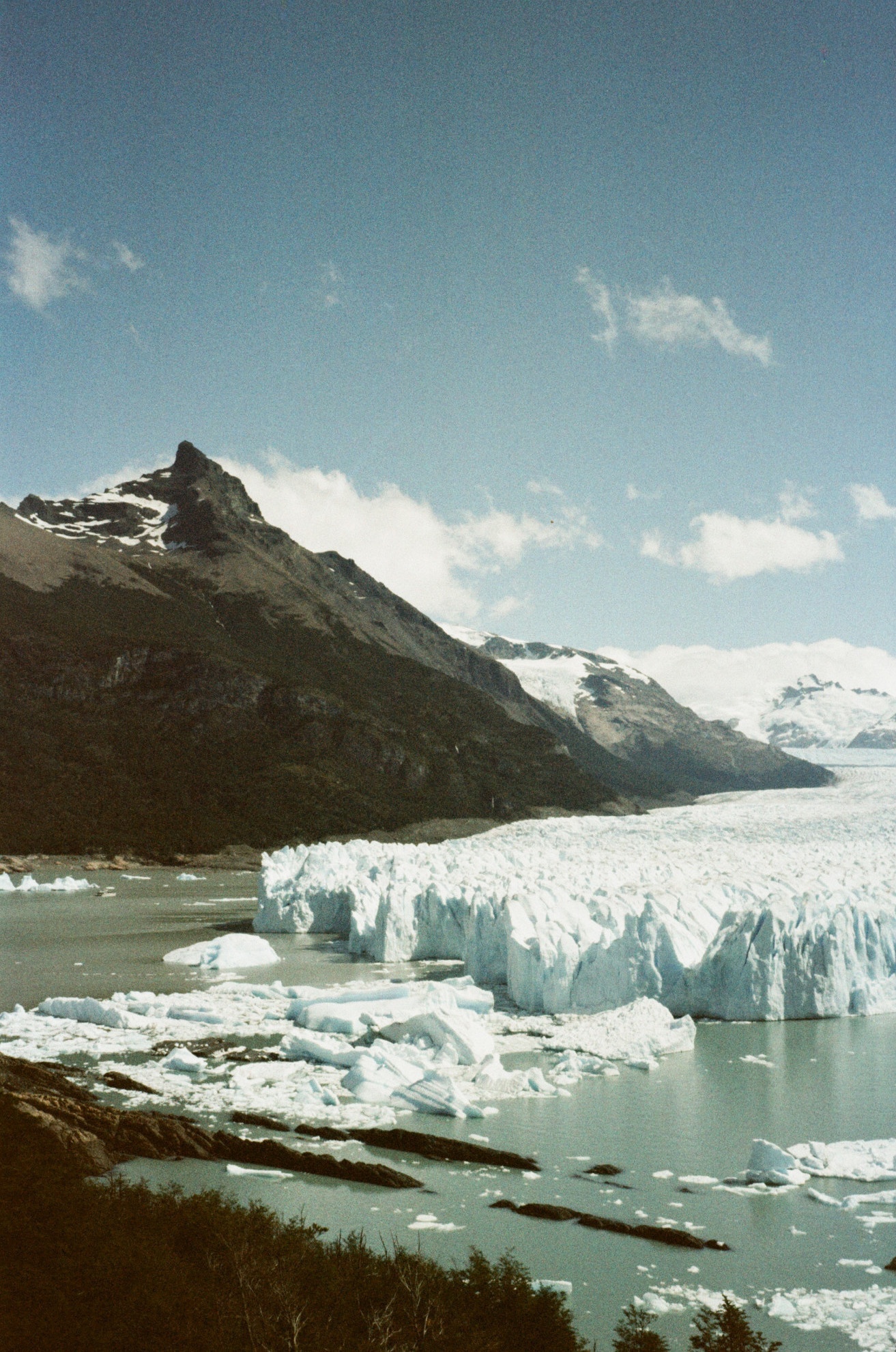 Macinati i chilometri, entrati nel Parque Nacional Los Glaciares con biglietto nominale, finiamo la corsa sulla Península de Magallanes, attorno ai 300 metri sopra il livello del mare: lo scenario che si apre davanti a noi è una lingua di ghiaccio che cade nel Lago Argentino, il più esteso del Paese, con acqua di un glauco lattiginoso, increspata da un vento algido che, spirando fra crepacci e pinnacoli, suona di scricchiolii e fragori. Ad avere le ali e poter osservare dall’alto, si vedrebbe una lingua ghiacciata dentellata che si estende per 30 chilometri verso ovest, cinta da una corona di cerros… Pietrobelli, Teniente Iglesias, Dos Picos, Cordón Federico Reichert.